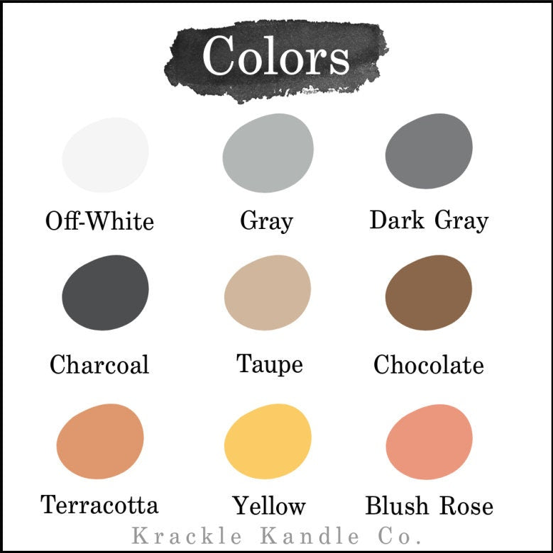 Candle holders pictured are in the colors dark gray, yellow, and off-white.