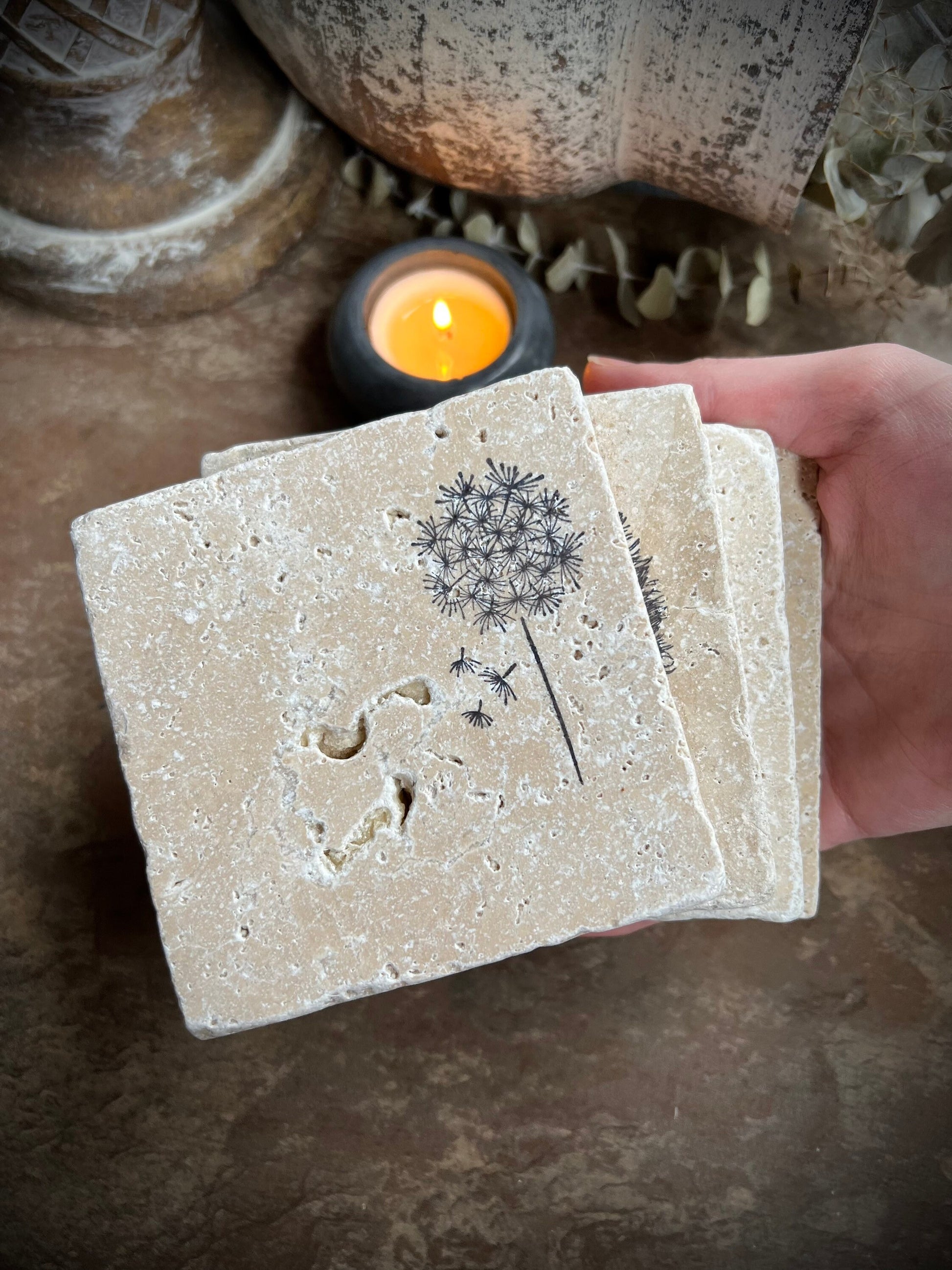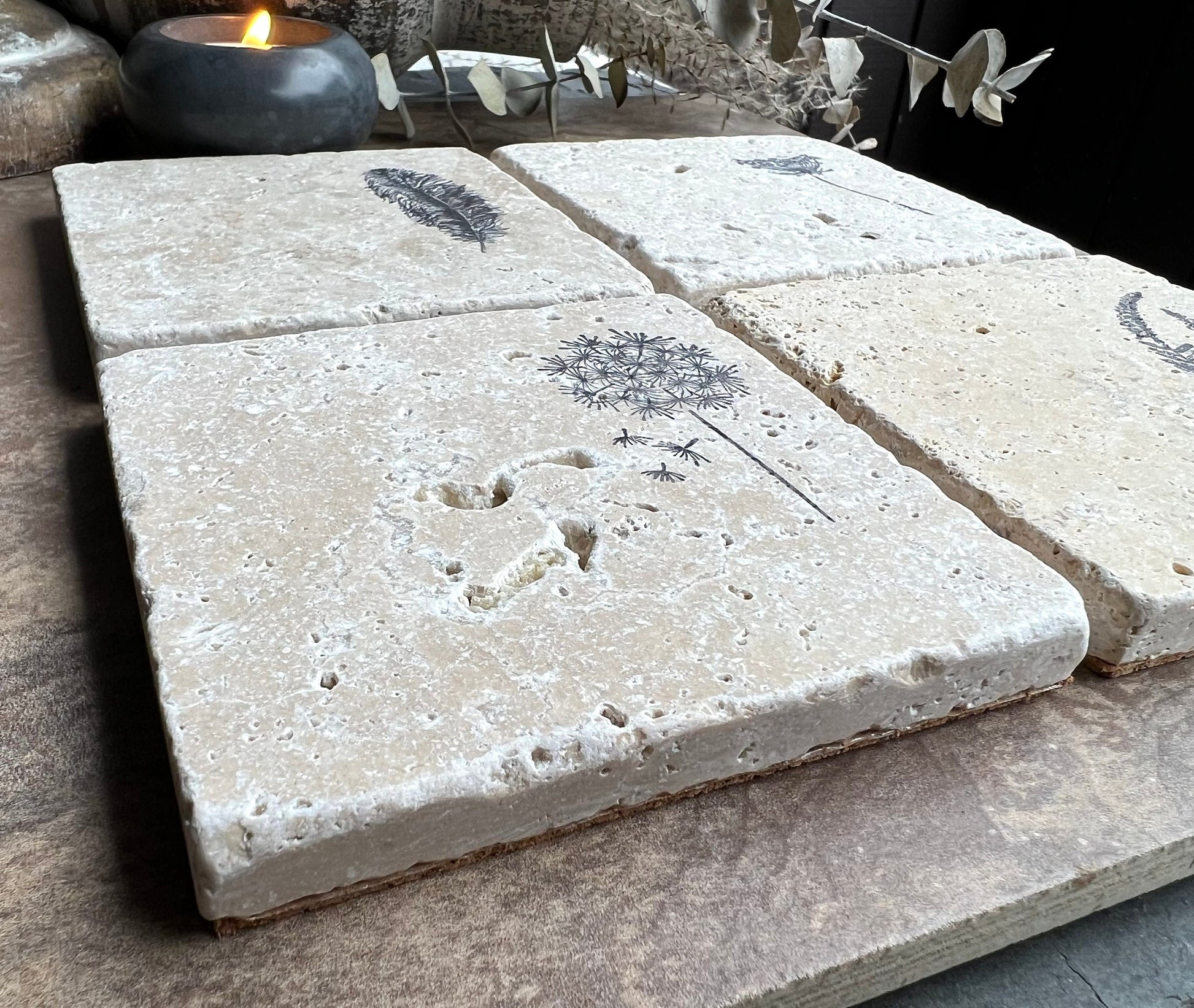 Listing is for ONE travertine coaster. Please select stamp design and quantity in the menu options.
